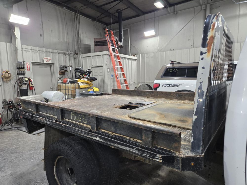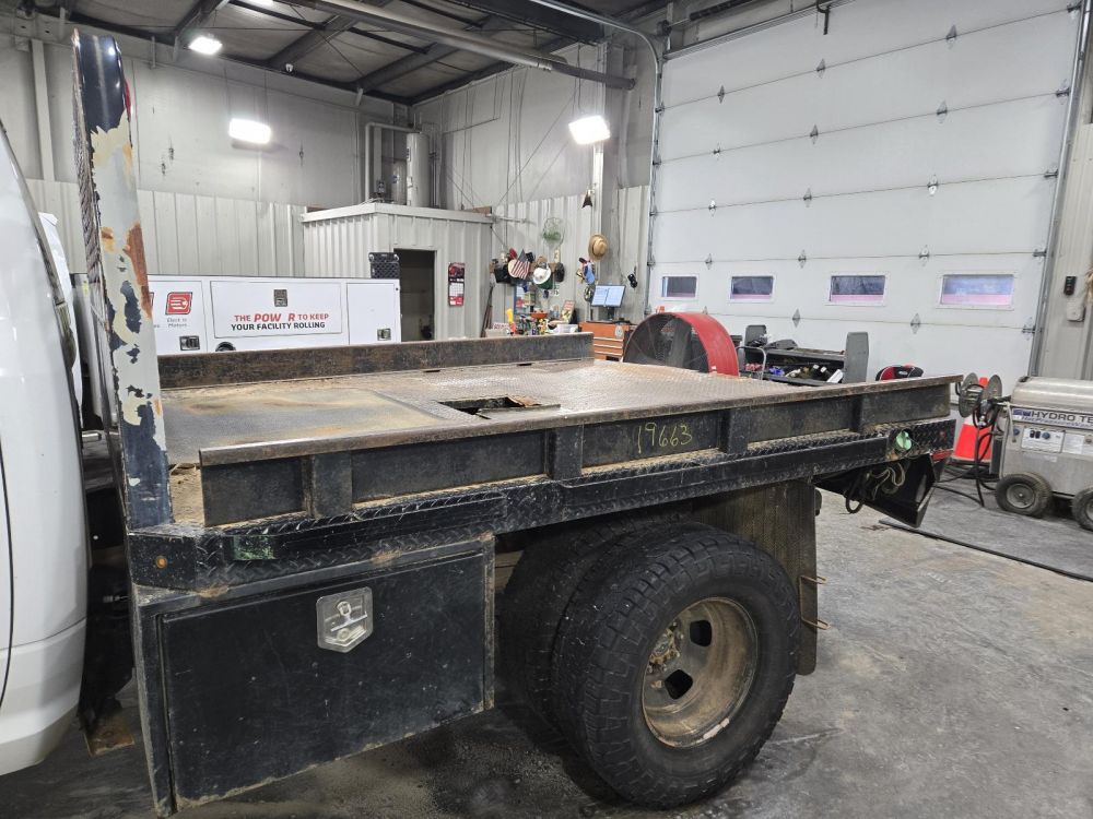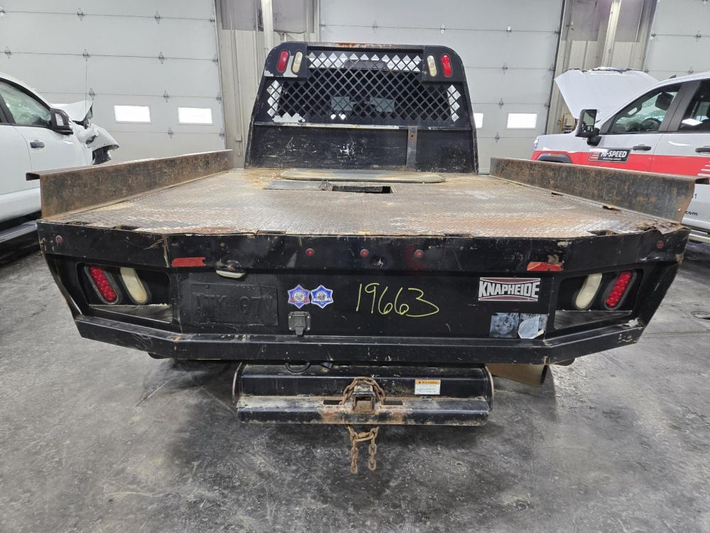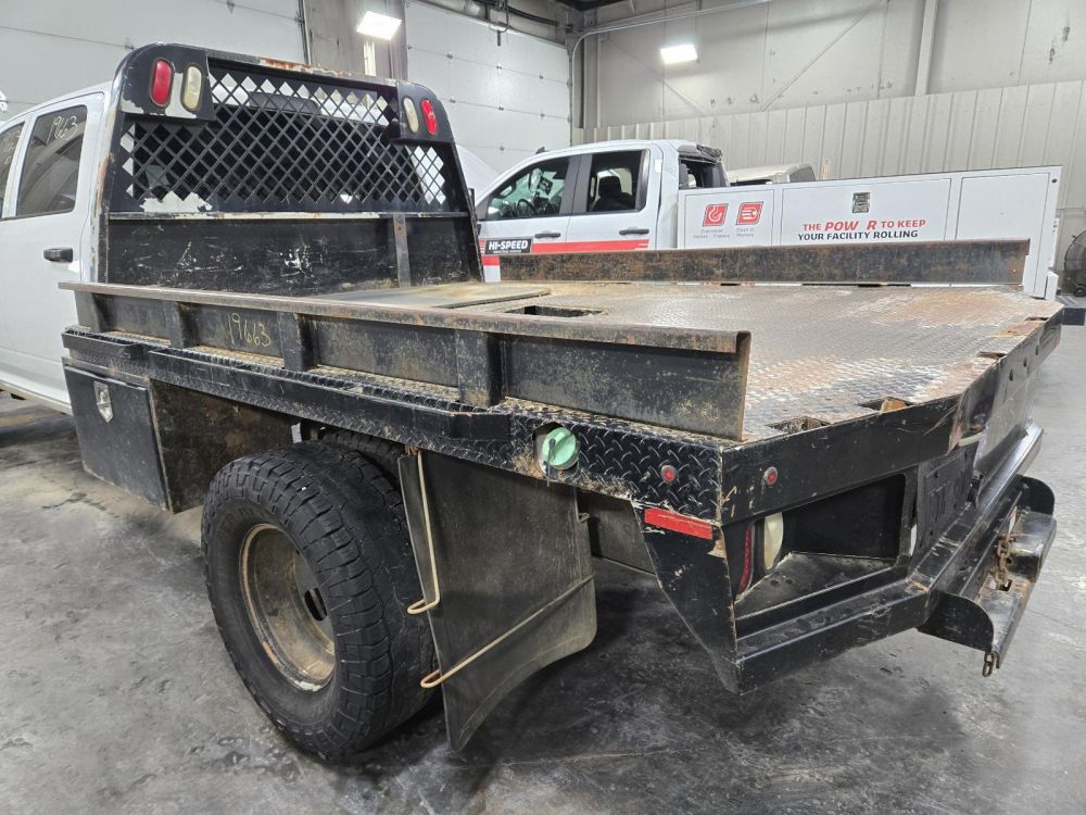 KNAPHEIDE BLACK FLAT BED DUALLY CAB & CHASSIS 9'6" LENGTH 7'8" WIDTH 61" CAB TO AXLE 35" FRAME CAME OFF A 2012 DODGE 3500 CAB AND CHASSIS