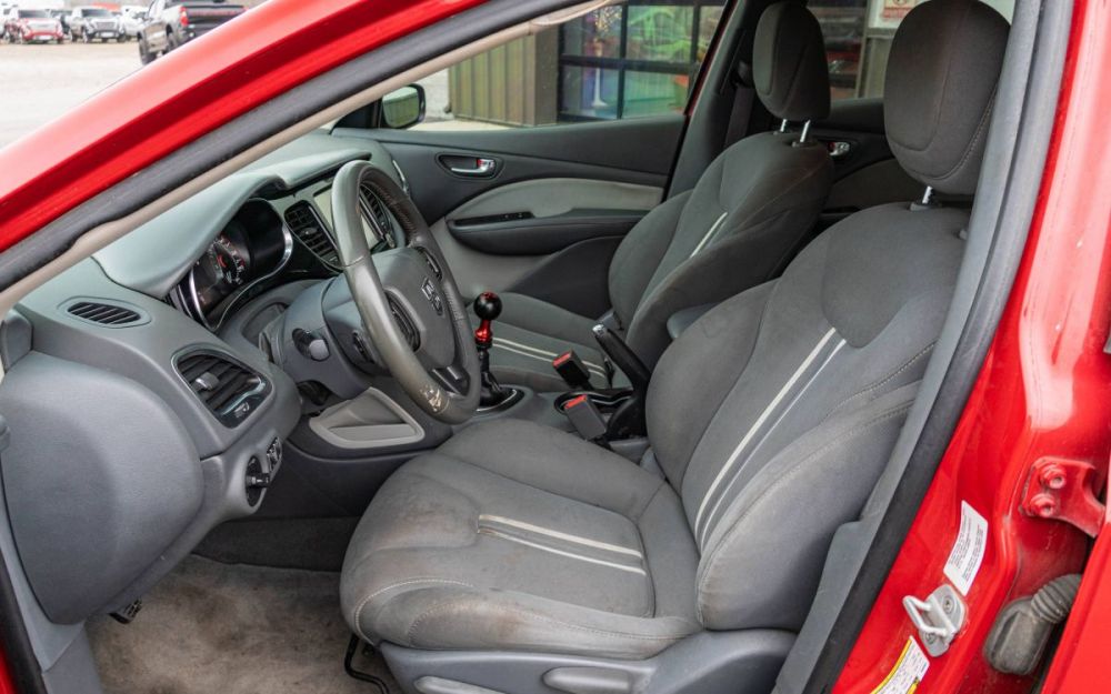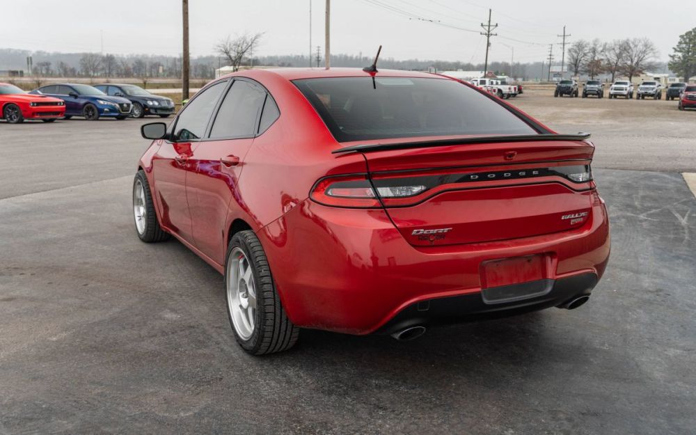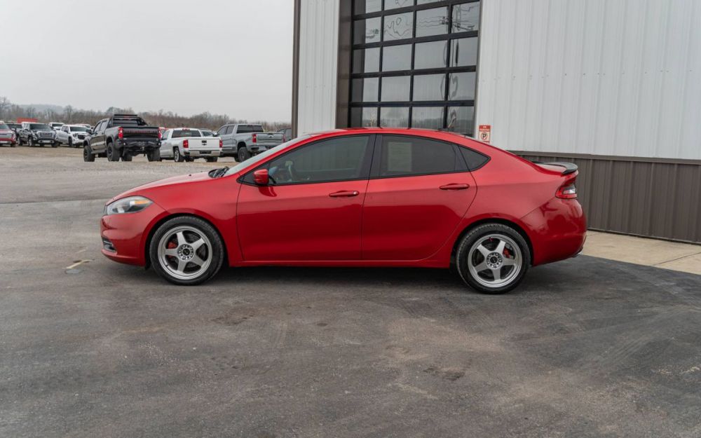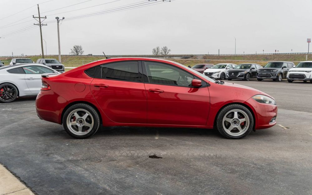This Dart has a clean title and clean Carfax and is equipped with a manual transmission paired to a 1.4L I4 engine. It features a red exterior with a black interior and includes cloth bucket seats, a touchscreen display, Bluetooth, navigation, cruise control, Vors SP1 aftermarket wheels, and a modified exhaust. We are a volume dealer offering the best prices in the Midwest. Financing options and service contracts are available on eligible vehicles. Call or text ReCar and save today: (573)-363-3322. Carfax reports available for all vehicles.