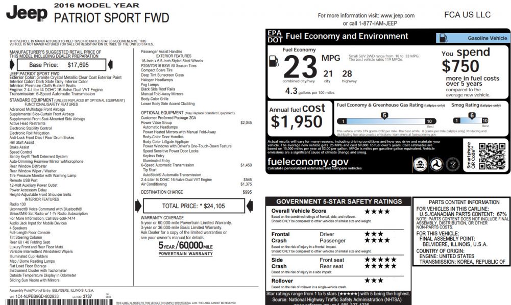 2016 Jeep Patriot Sport