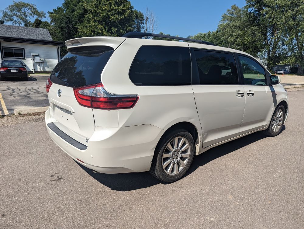 2017 Toyota Sienna XLE AWD Van. Traded in after 5 years and nearly 80k trouble free miles. Car was originally purchased on a water claim with 17k miles. There are a few misc blemishes including scuffs/scratches on the right rear quarter wheel well area (See pics). Front cover is cracked and is currently being replaced. Vehicle will be ready to go with a rebuilt flood salvage title.