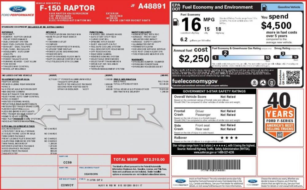 2018 Ford F-150 RAPTOR 4x4