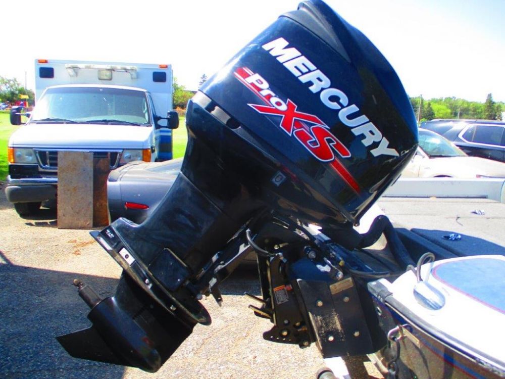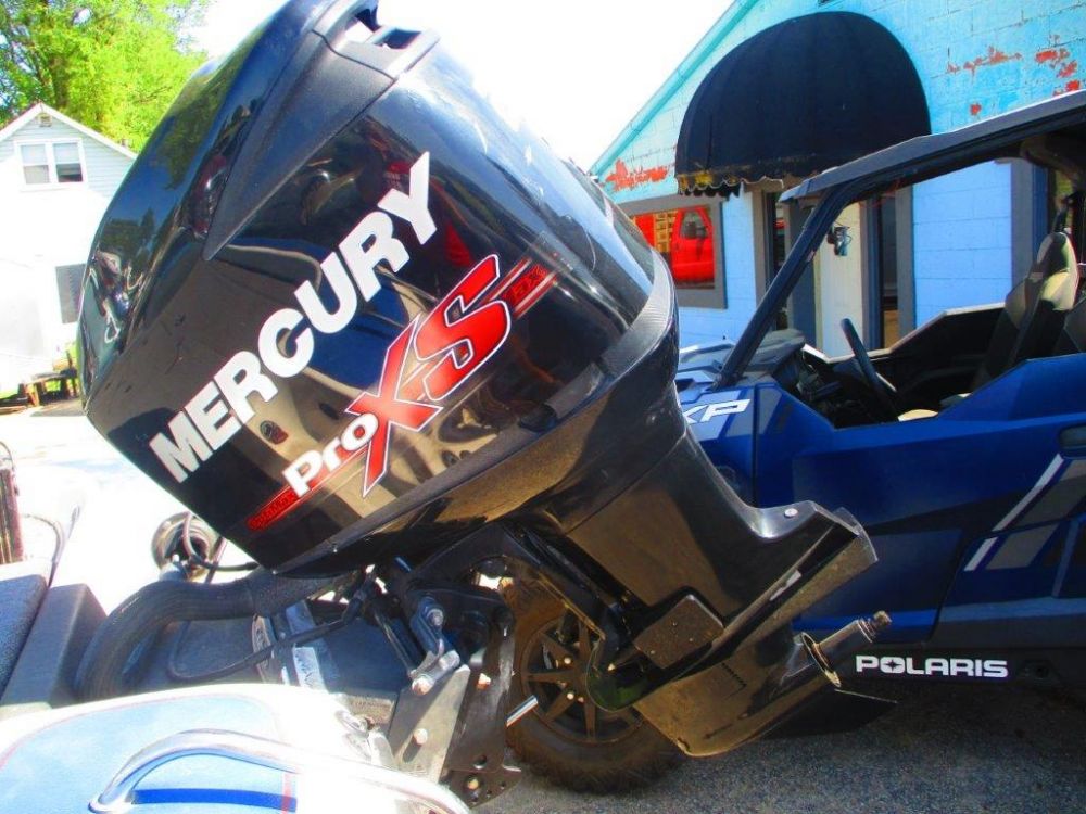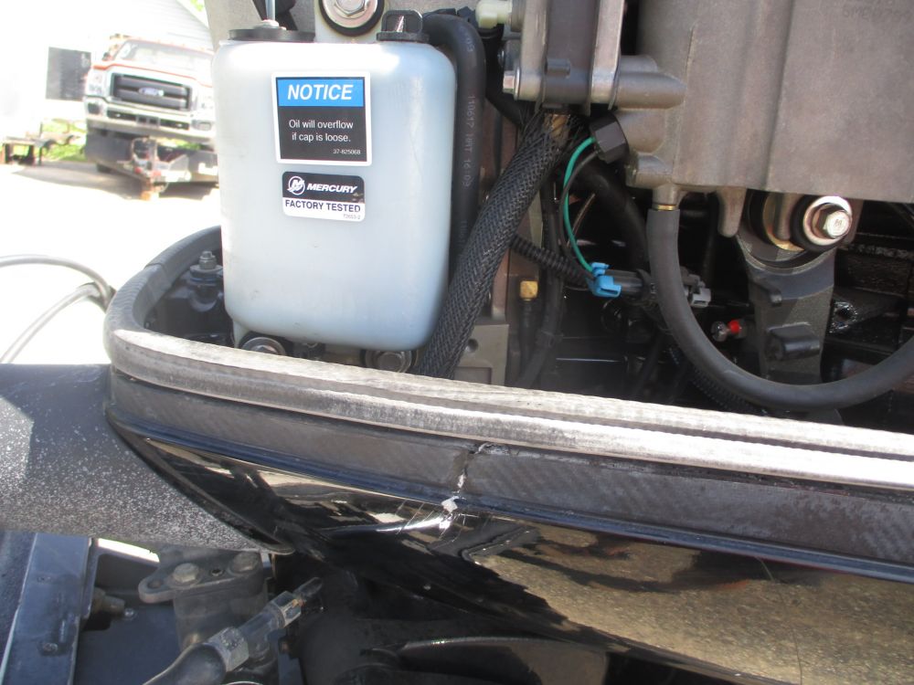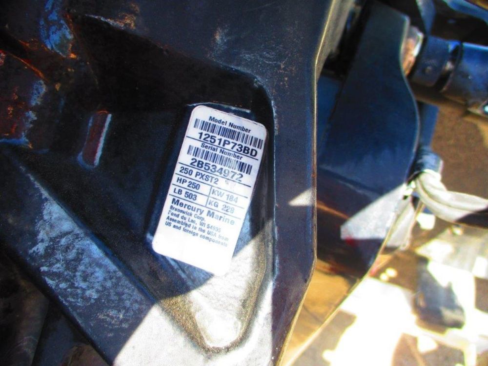 2018 Mercury 250 hp Pro XS Opti Max sold with power steering, cables, control box, jack plate and misc. Unit is on a damaged boat which is included for convenience only. Engine is equipped with vessel view Bluetooth which shows 449.5 hours. Engine has been run and guaranteed to run at time of sale. Unit has misc marks and scratches along with a small crack on the port side lower cowl pan as pictured. NO PROP.