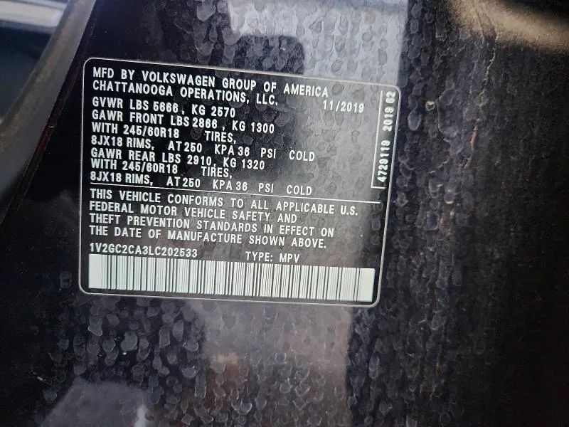<p><strong><span style='font-family: Arial,Helvetica,sans-serif; font-size: medium;'>2020 Volkswagen Atlas Cross Sport - S 4Motion Sport Utility 4D - AWD - 1V2GC2CA3LC202533