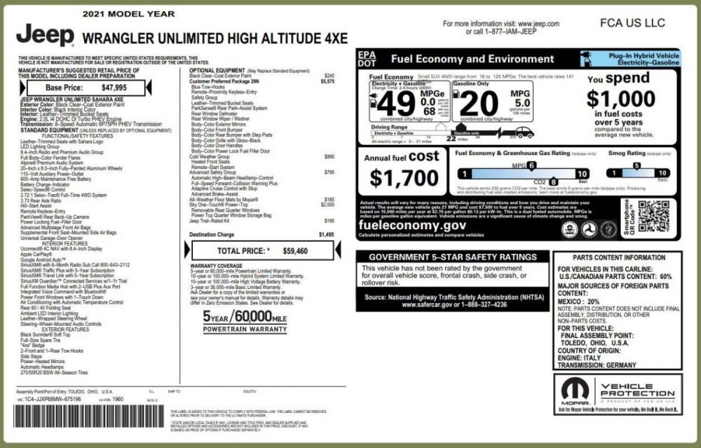 2021 Jeep Wrangler UNLIMITED HIGH ALTITUDE 4XE