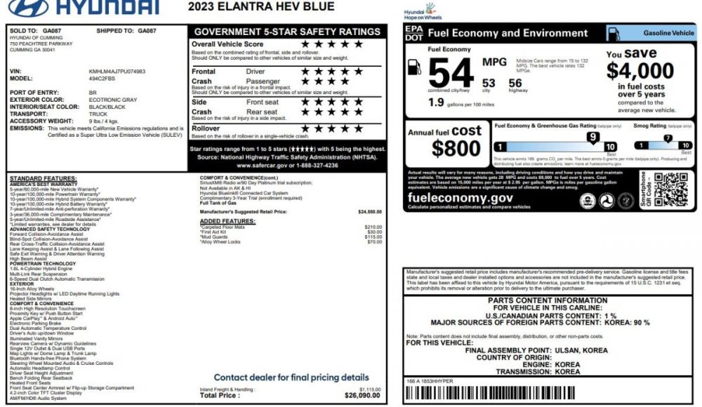 2023 Hyundai ELANTRA Hybrid Blue