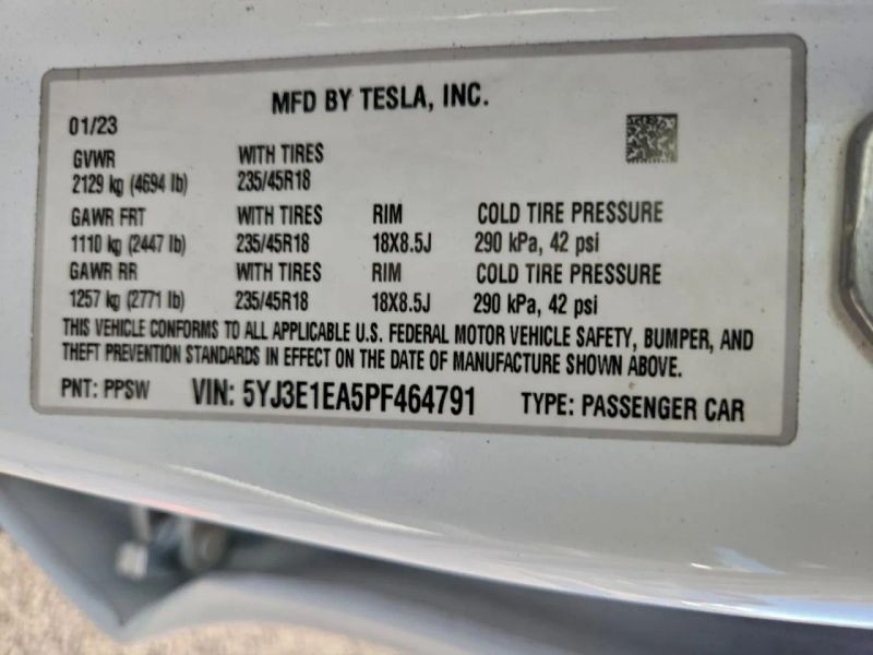 <p><strong><span style='font-family: Arial,Helvetica,sans-serif; font-size: medium;'>2023 Tesla Model 3 - Standard Sedan 4D - RWD - 5YJ3E1EA5PF464791